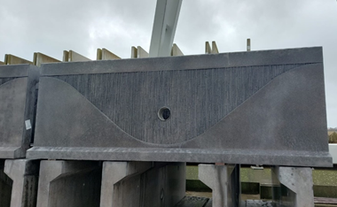 Giverbo mocht hiervoor in Eelderwolde 180 st. antracietkleurige keerwanden L1.25 lang 3.5 m’ voorzien van rietstructuur en een verbrede bovenrand van 30 cm leveren.
